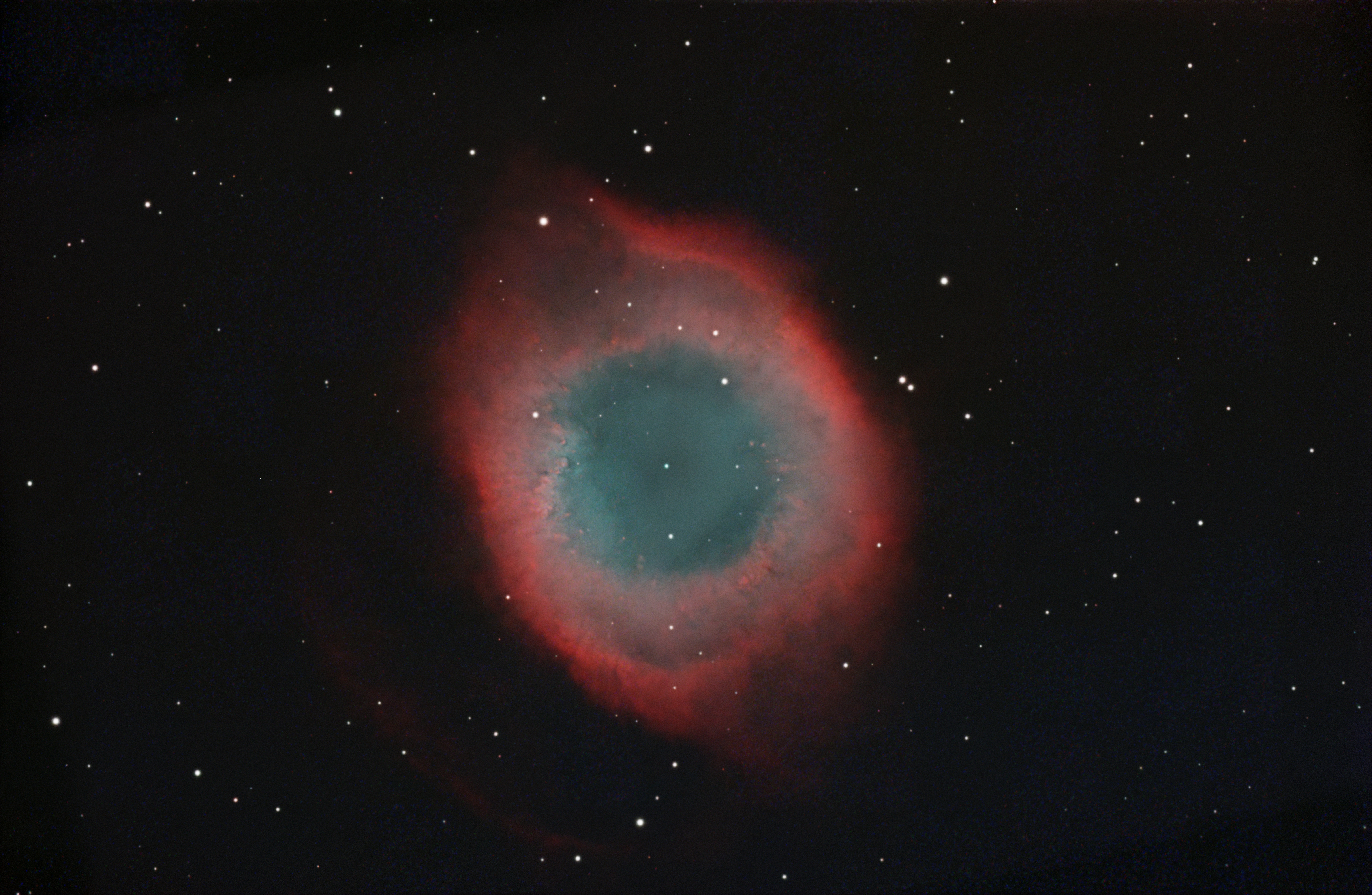 The Dumbbell Nebula (also known as the Apple Core Nebula, Messier 27, and NGC 6853) is a planetary nebula (nebulosity surrounding a white dwarf) in the constellation Vulpecula, at a distance of about 1360 light-years.